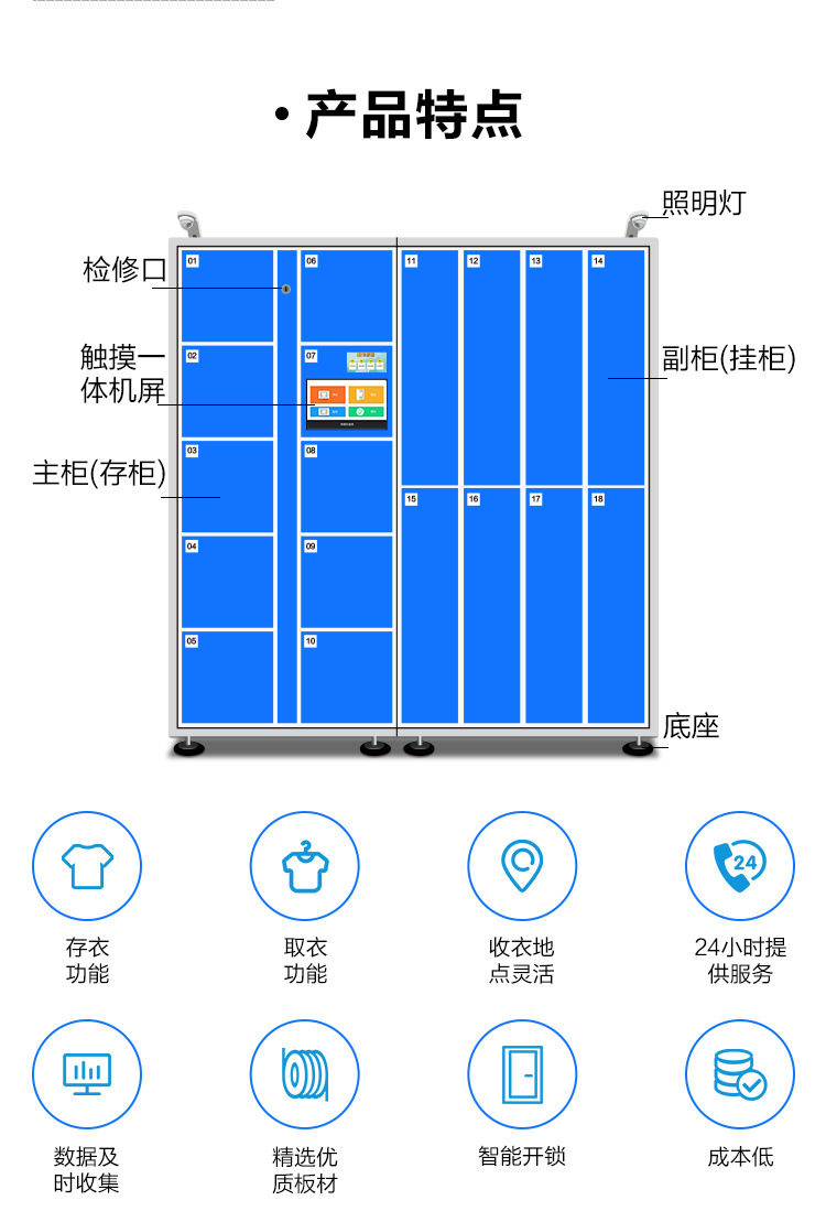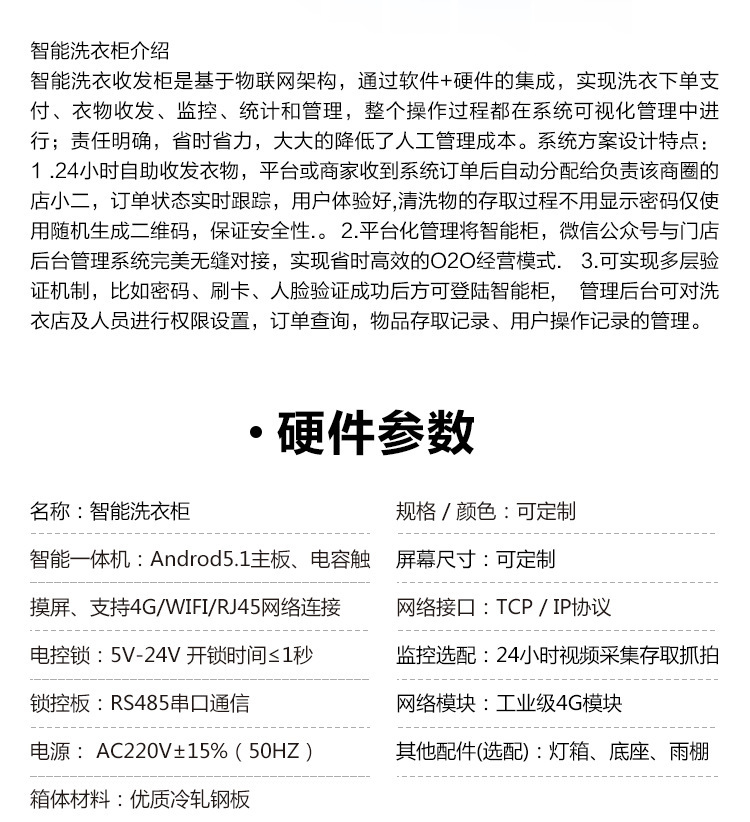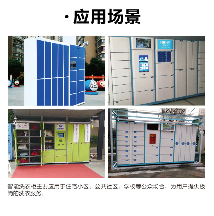 智能洗衣柜可投放于小區、校園、醫院、公寓等人流量大且密集的區域。智能柜搭載移動互聯網、物聯網等相關技術,結合洗衣軟件,搭建起洗衣智能化自助平臺。是洗衣行業的人工智能與互聯網+生活服務融合下的洗滌新模式。